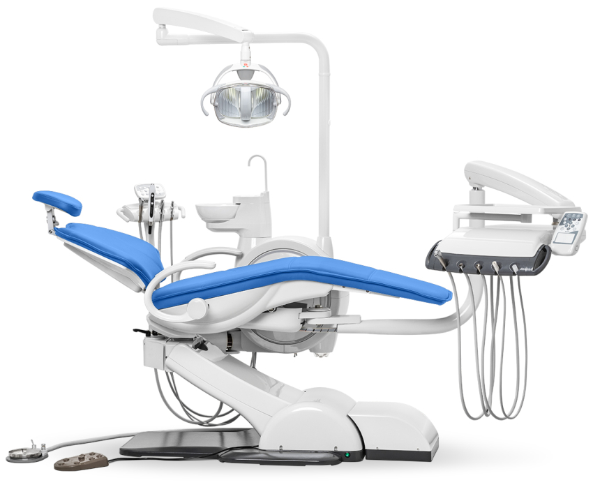 Главная особенность модели — система «Перформер», позволяющая переключать конфигурацию для врачей правши и левши без потери функциональности. Это решение делает установку по-настоящему универсальной. Чугунное основание и каркас кресла из алюминиевого сплава обеспечивают исключительную устойчивость.